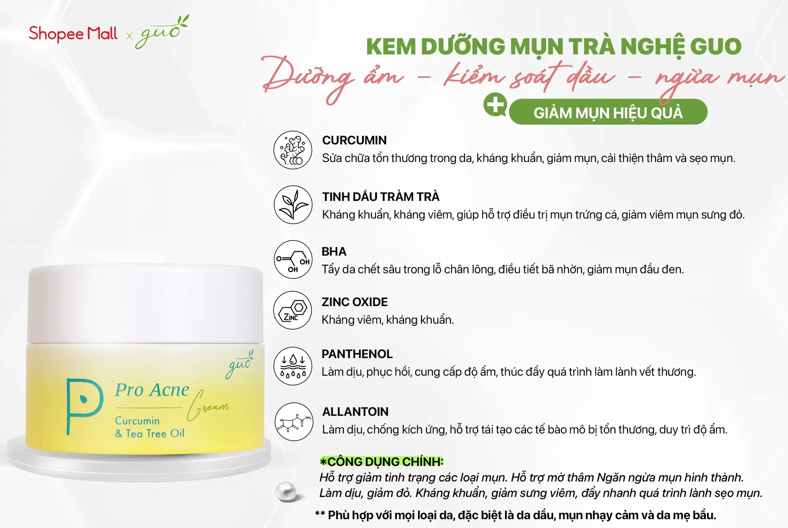 ♥ Vừa là kem dưỡng vừa hỗ trợ trị mụn, gom cồi mụn tốt.